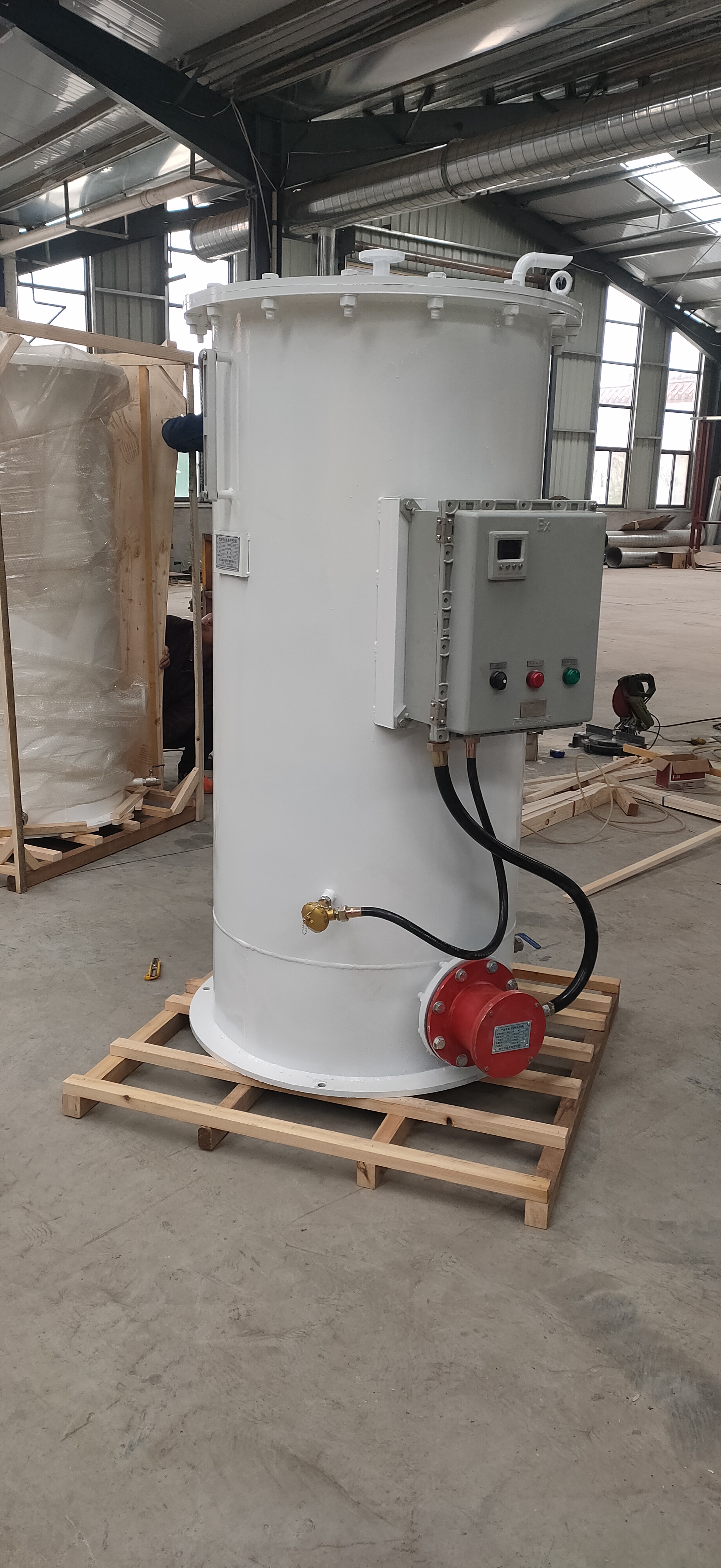 The device consists of a stainless steel water tank, a submerged heat exchange tube bundle, electric heating elements, and an intelligent control system. The electric heating elements heat the water in the tank to a set temperature (usually 60-70℃). When the low-temperature liquid medium passes through the heat exchange tube bundle, it absorbs heat from the hot water to achieve phase change vaporization. Temperature sensors monitor the water temperature and outlet gas temperature in real time, and the heating power is dynamically adjusted through a PLC or PID controller to ensure stable vaporization capacity and temperature accuracy controlled within ±2℃.